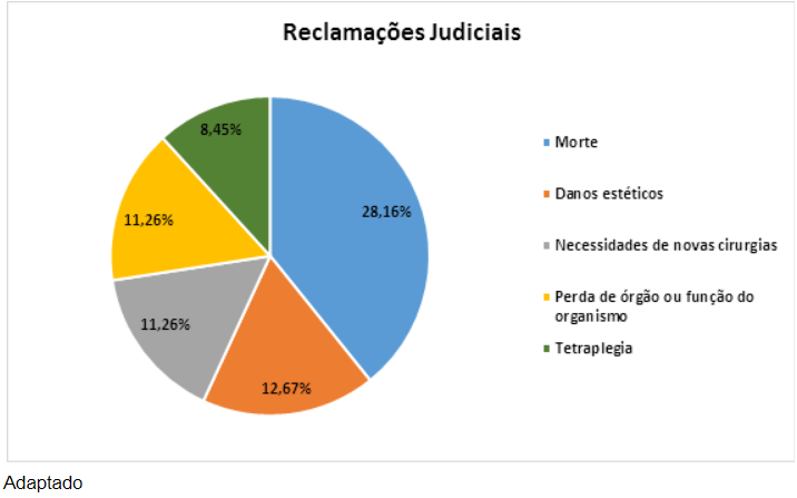 Posto isto, é traçado um gráfico sobre as cinco causas que mais tiveram reclamações judiciais decorrente de erro médico no país, como segue: